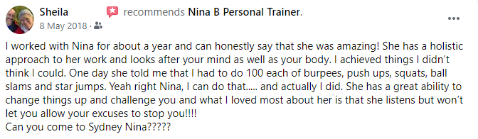DISCLAIMER: The sales figures stated on this page and discussed in the training curriculum are our personal sales figures and in some cases the sales figures of previous or existing clients. Please understand these results are not typical. We’re not implying you’ll duplicate them (or do anything for that matter). The average person who buys “how to” information gets little to no results. We’re using these references for example purposes only. Your results will vary and depend on many factors including but not limited to your background, experience, and work ethic. All business entails risk as well as massive and consistent effort and action. If you’re not willing to accept that, please DO NOT PURCHASE FROM Nina B Body Transformations